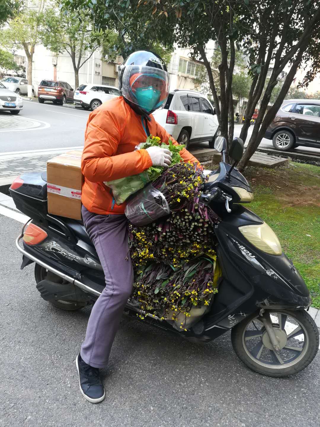 公益和善举是有感染力的。元月下旬至2月初(封闭校园之前),王国念老师冒着瑟瑟寒风,多次骑电动车到后山栾阿姨家运输爱心蔬菜回地大,分发给公司居住在校内的8位老师(老师自愿申领)和东区邻里10余户。