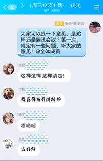 员工们的认可给了我极大的鼓励,在接下来的教学中,我也在不断地改善自己的课堂:为了弥补录课缺乏课堂互动的缺陷,我把每个章节的PPT内容分录成多个视频,每个视频不超过30分钟。对于需要员工进行课堂讨论的话题,我采取将话题以问题群的形式在前一个视频末尾呈现,对参考答案在后续视频的开头进行解说的办法,并通过QQ群分享图片、组织讨论,还通过提前录制视频,就具有共性的作业问题进行集中讲解。课堂氛围就这样活了起来!为了记录员工的出勤状况,又方便我进行逐次统计,我尝试利用QQ群的“投票”功能进行点名,发现这是一个不必借助其它软件而且快捷有效的点名方式。通过不断改进,我的网络教学也逐渐走上了正轨,受到了员工们和公司听课领导的好评。
