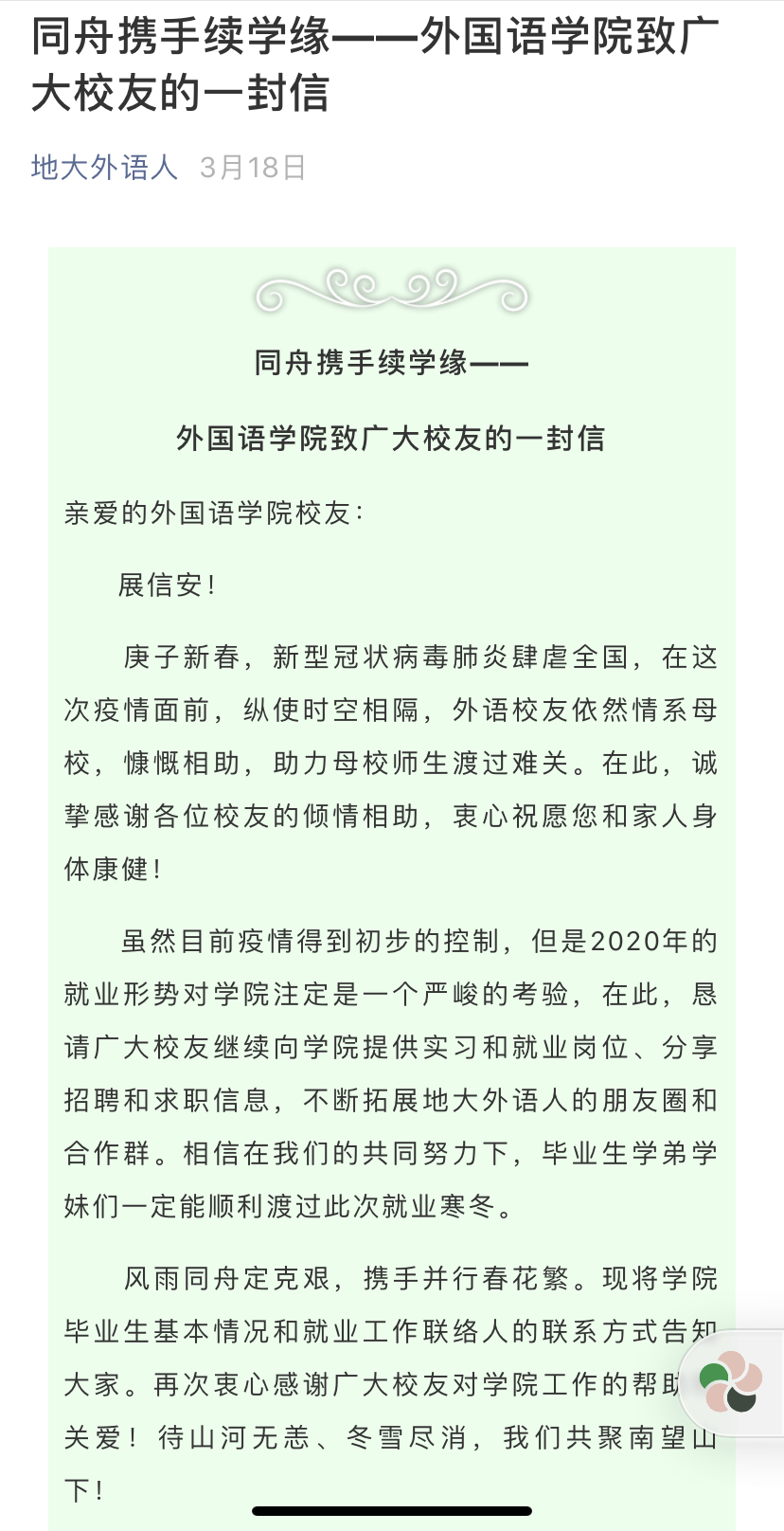太阳集团tyc539促进2020届毕业生充分就业工作方案        致员工的一封信