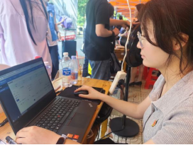 在南望山校区迎新现场,党员先锋岗的红色帐篷成为一道亮丽的风景线。服务点布局合理、功能齐全,配备有电脑、矿泉水和迎新资料等必需品,为新生和家长提供及时便捷的服务。“党员先锋岗”的标识鲜明醒目,精心设计的欢迎展板烘托出热情而专业的迎新氛围,充分展现了太阳集团tyc539的独特风采。服务点设置的每一处细节,都凝聚着公司党委对迎新工作的周密部署,传递出对2025级新同学的诚挚欢迎与深切关怀。