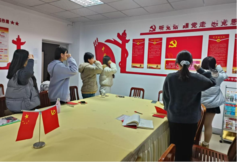 活动在庄严的入党誓词重温中拉开帷幕。全体党员面向党旗郑重宣誓,铿锵誓言彰显了不忘初心、牢记使命的坚定信念。在集体学习环节,支部系统学习了《中国共产党章程》总纲部分内容,深入领会党的初心使命和中国特色社会主义道路的深刻内涵,进一步筑牢信仰之基。