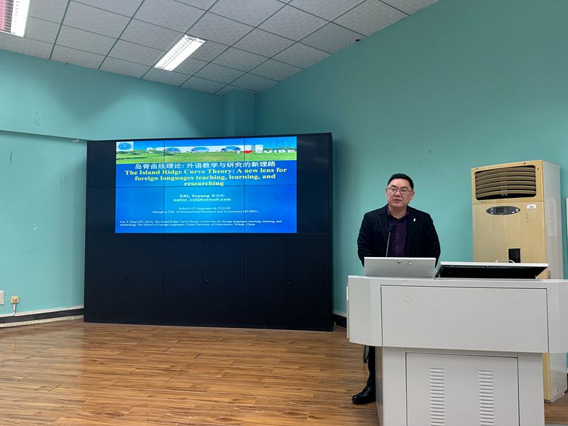 蔡雨阳教授是香港大学教育公司语言测评与教育哲学博士,现任上海对外经贸大学语言教育与测评研究中心主任、上海市高层次特聘教授。他在语言测评、教育心理学等领域成就卓越。蔡教授以其原创性研究为学界所知,是语言测评理论“动态语言能力系统”和教育心理学理论“岛脊曲线理论”的创立者,是多阶调节分析统计模型的开发者。本次讲座中,蔡教授以深厚的学术背景和幽默风趣的语言,为师生们带来了一场别开生面的学术盛宴。