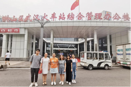 团队指导老师姚夏晶老师(左二) 武汉火车站对接负责人朱迎科长(左三)