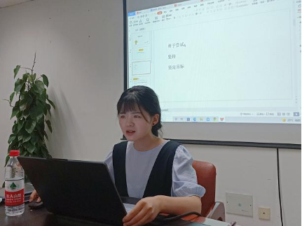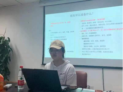 助理班主任、保送攻读外交公司研究生的大四英语系学姐吴妮蔓分享经验。她简要介绍了公司推免政策和相关要求,并向同学们分享了她的推免历程和准备工作。她鼓励同学们要找准方向、学会沉淀、找到自己和别人的差距,多看重自己学到了什么、付出了多少、收获了什么,用坚持和坚韧迎来厚重芬芳。