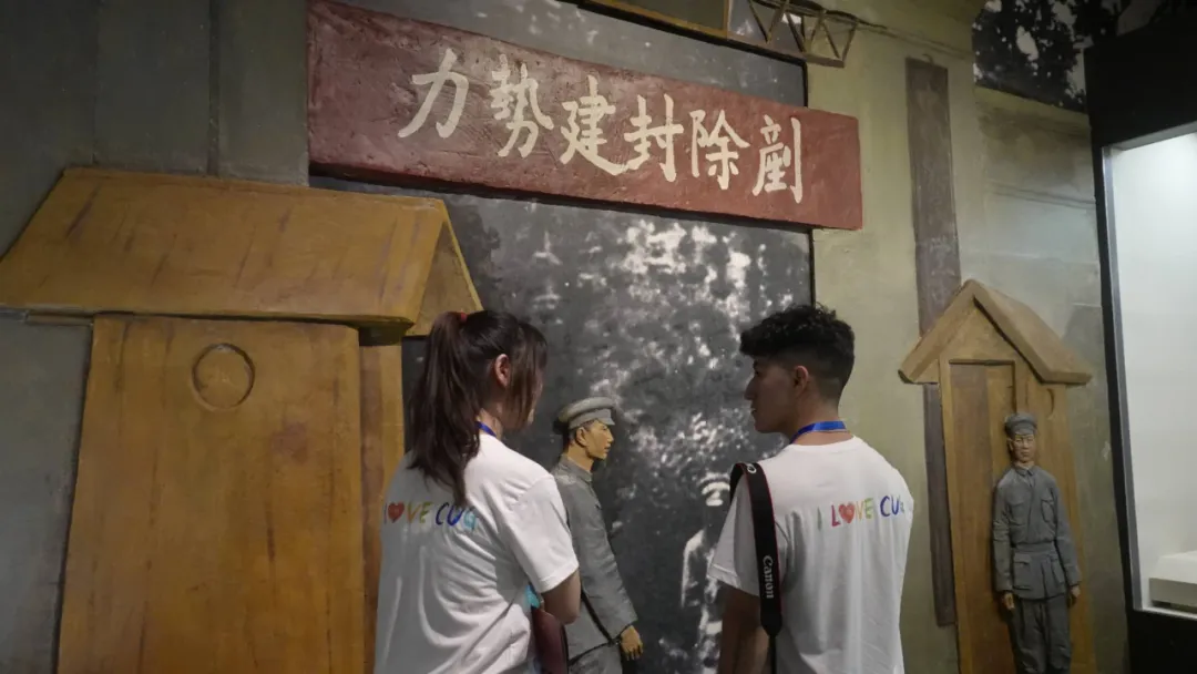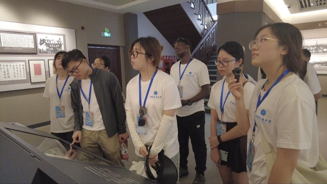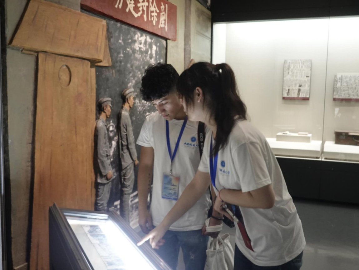 实践团国际员工成员正在参观馆内历史资料