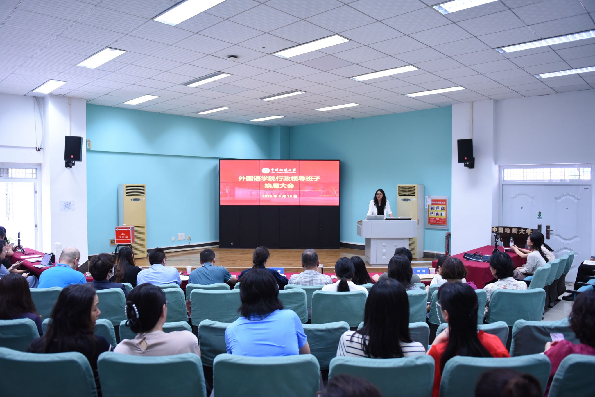 在听取现任行政领导班子和班子成员述职后,蒋怀柳主持民主推荐及民主测评工作,全院教职工按照要求对现任行政领导班子及班子成员进行了民主测评,并对新一届行政领导班子续任成员进行了民主推荐。
