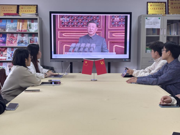 活动开篇,支部聚焦“学习习近平总书记在纪念中国人民抗日战争暨世界反法西斯战争胜利80周年大会上的讲话”主题开展专题学习。党员及积极分子们集体观看讲话视频,逐字逐句研读讲话原文,深刻领会习近平总书记对中国人民抗日战争历史意义、精神价值和时代启示的重要阐述,重温那段浴血奋战、救亡图存的峥嵘岁月。作为青年党员与党员后备军,要始终铭记历史、缅怀先烈,将爱国情怀转化为勤学笃行的奋进动力,以实际行动守护来之不易的和平成果,为实现中华民族伟大复兴的中国梦凝聚青春力量。