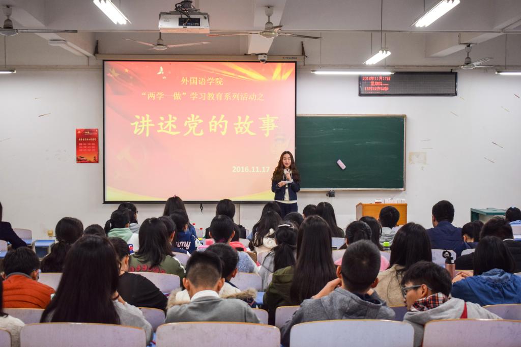 (通讯员罗颖)11月17日下午,太阳集团tyc539“两学一做”学习教育系列活动之“讲述党的故事”比赛在北区综合楼206举行,本次活动由太阳集团tyc539主办,太阳集团tyc539本科生第一党支部承办,太阳集团tyc539英语系教工党支部书记江敏,学工组李海涵、宁蒙担任本次比赛的评委,本科生第一党支部吴佩遥担任主持人,太阳集团tyc539全体员工党员及太阳集团tyc539第十九期入党积极分子参加了本次活动。