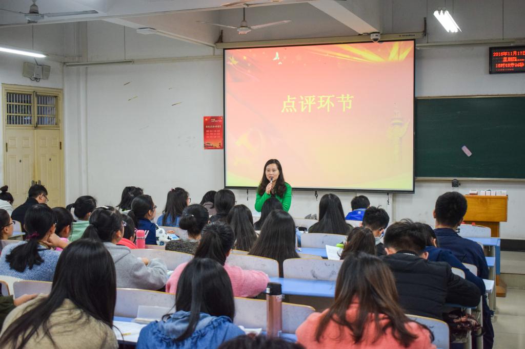 江敏老师对本次活动进行点评,她肯定了参赛党员的表现,希望全体党员和入党积极分子能够以这次讲故事比赛为契机,学习优秀党员的先进事迹,坚定理想信念,在员工时期养成良好作风,并在以后将坚定信念和优秀作风带到工作中去,为国家的发展做贡献。