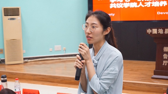 在正式提案环节,员工代表张依晴、宋啟骏、彭信君、何亦凝、宗仪、徐小清分别就北区自习室、宣传电子屏、实习和早操等问题进行了提案,对公司的建设和发展提出了意见与建议。院领导认真听取并记录,对员工的疑惑进行解答,与同学们进行了深入交流。