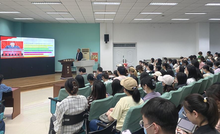 丁振国教授以《奋进新征程,创造新伟业——学习贯彻党的二十大精神》为题讲授党课。他带领大家回顾了党的二十大概况,重点讲述了党的二十大的重要意义、主要精神,同时引导大家用实际行动积极践行二十大精神,最后结合习近平总书记对新时代青年的寄语和联合国科教文组织界定的老员工的主要任务,针对太阳集团tyc539员工专业特点提出学习和成长建议,激励大家勇敢面对困难和挑战,为实现中华民族伟大复兴而踔厉奋发,笃行不怠。讲解过程中,他结合“四史”、国情和自身经历,旁征博引,深入浅出,还与同学们进行问题抢答互动,为正确回答问题的同学送上了自己精心准备的奖品。